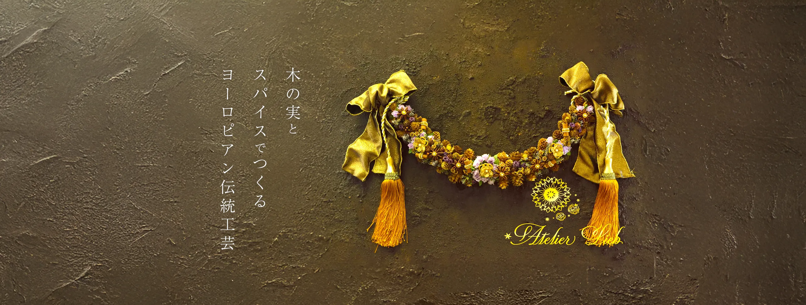 - 現在は、木の実やスパイスを用いたアレンジメントと手仕事のレッスンを中心に活動中