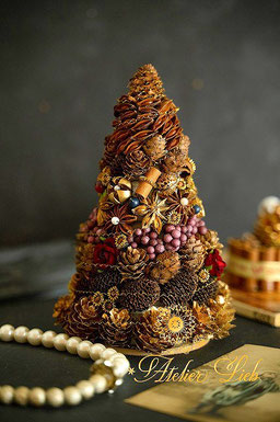 自然な木の実、スパイス、造花等を使ってインテリアにもなる作品を作ります。