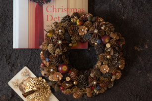 木の実とお花、ブリヨンパール等を使ってリースや伝統的な装飾品をお作り頂けます